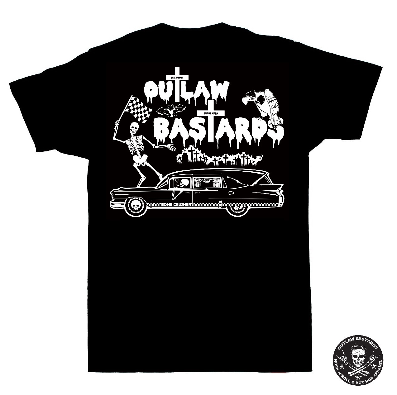 Originální černé dětské bavlněné tričko Outlaw Bastards, vpředu s kvalitním potiskem, motiv old school, rockabilly, rock´n ´roll