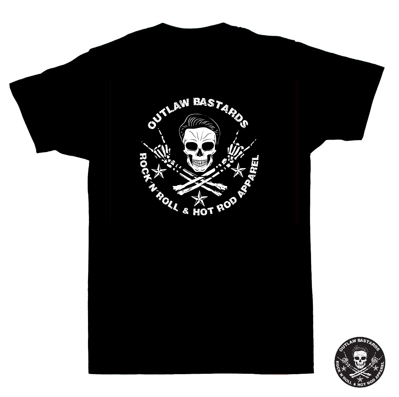 Originální černé dětské bavlněné tričko Outlaw Bastards, vpředu s kvalitním potiskem, motiv lebka, rockabilly, rock´n ´roll