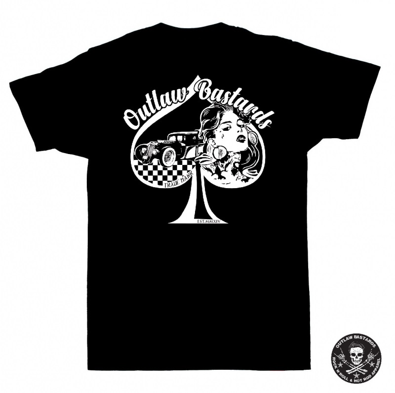 Originální černé dětské bavlněné tričko Outlaw Bastards, vpředu s kvalitním potiskem, motiv old school, rockabilly, rock´n ´roll