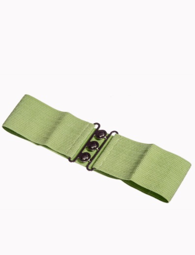 Stříbrný elastický retro pásek od značky Banned, perfektní doplněk k retro / rockabilly šatům, zapínání na tři stříbrné zacvakávací kroužky.